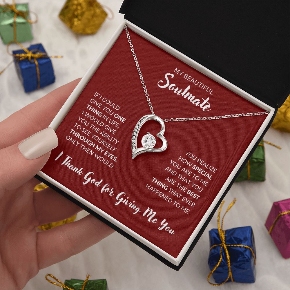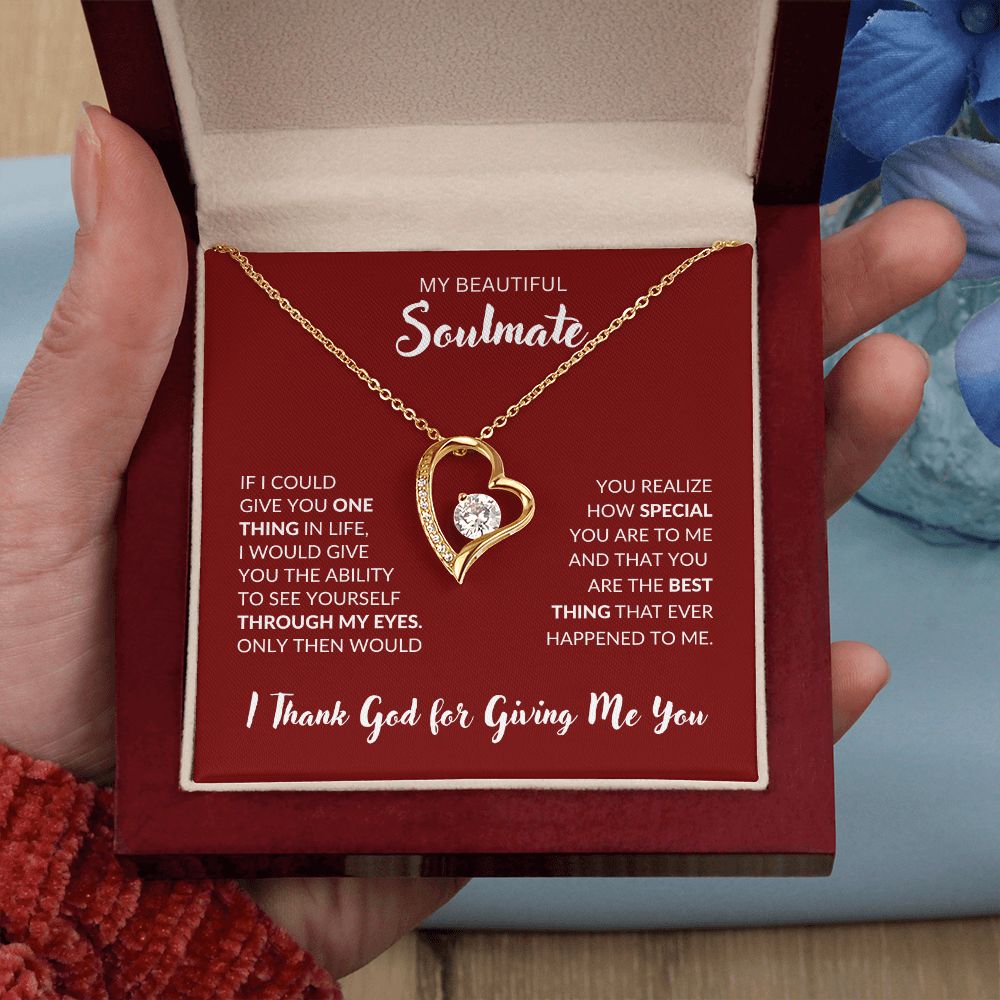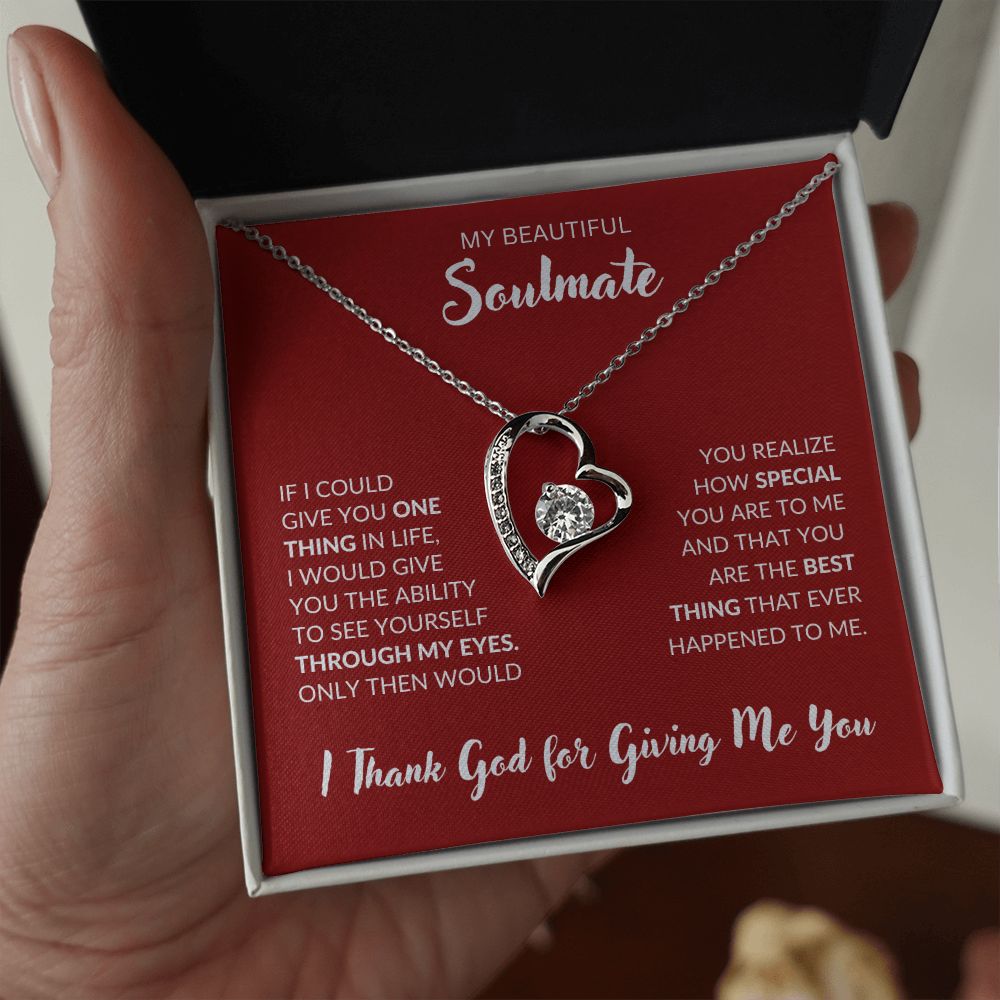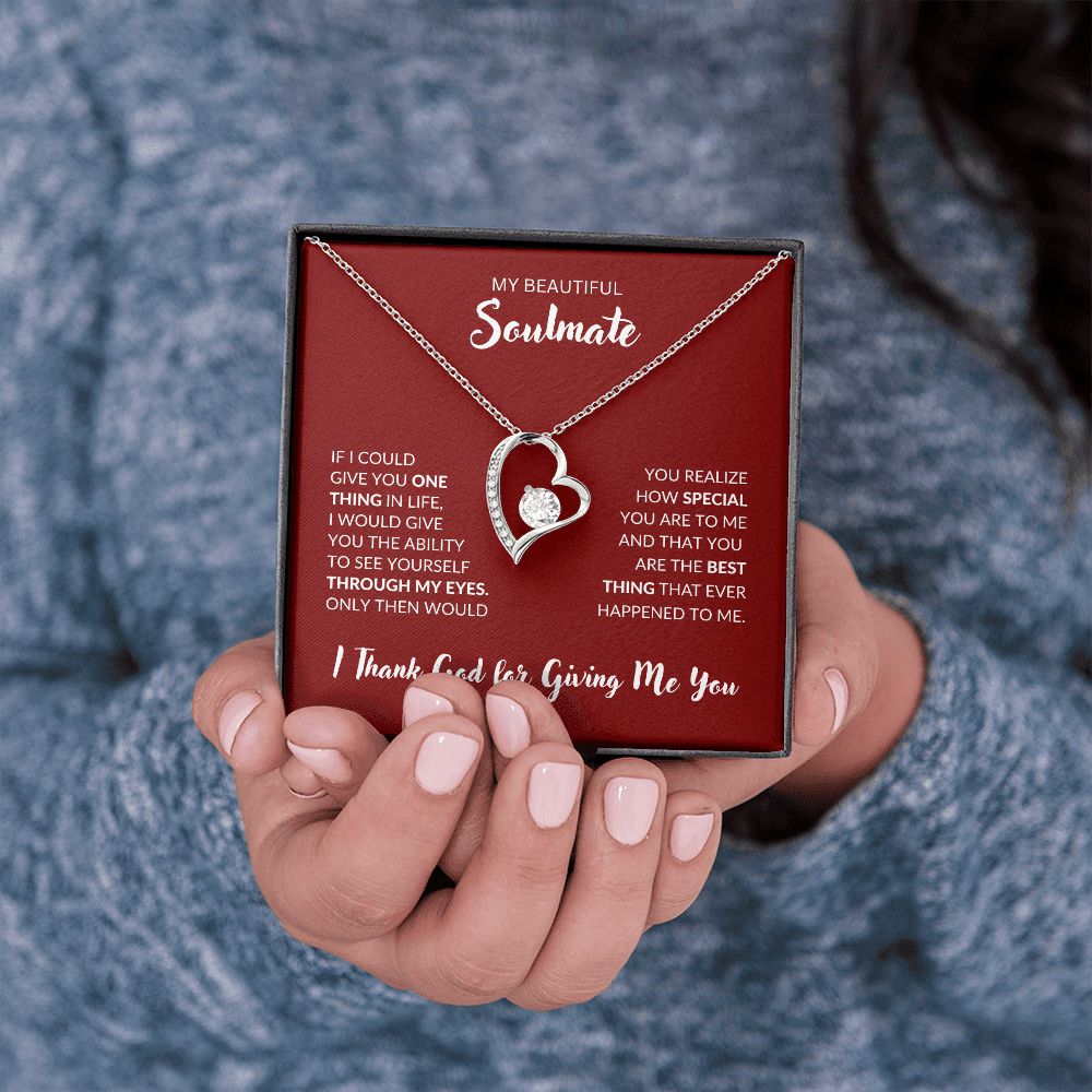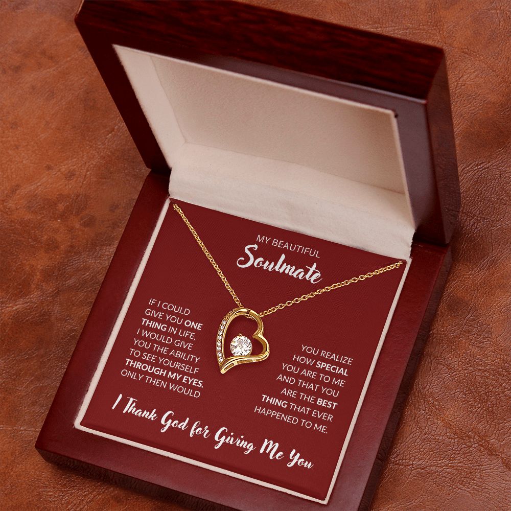 The dazzling Forever Love Necklace is sure to make her heart melt! This necklace features a stunning 6.5mm CZ crystal surrounded by a polished heart pendant embellished with smaller crystals to add extra sparkle and shine. Beautifully crafted with either a white gold or yellow gold finish. This gift will remind her daily of how grateful you are that God brought you together.