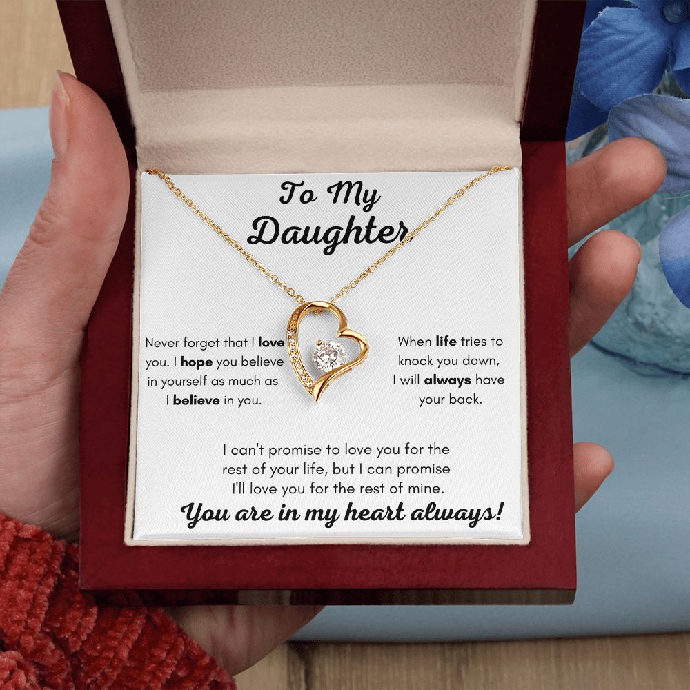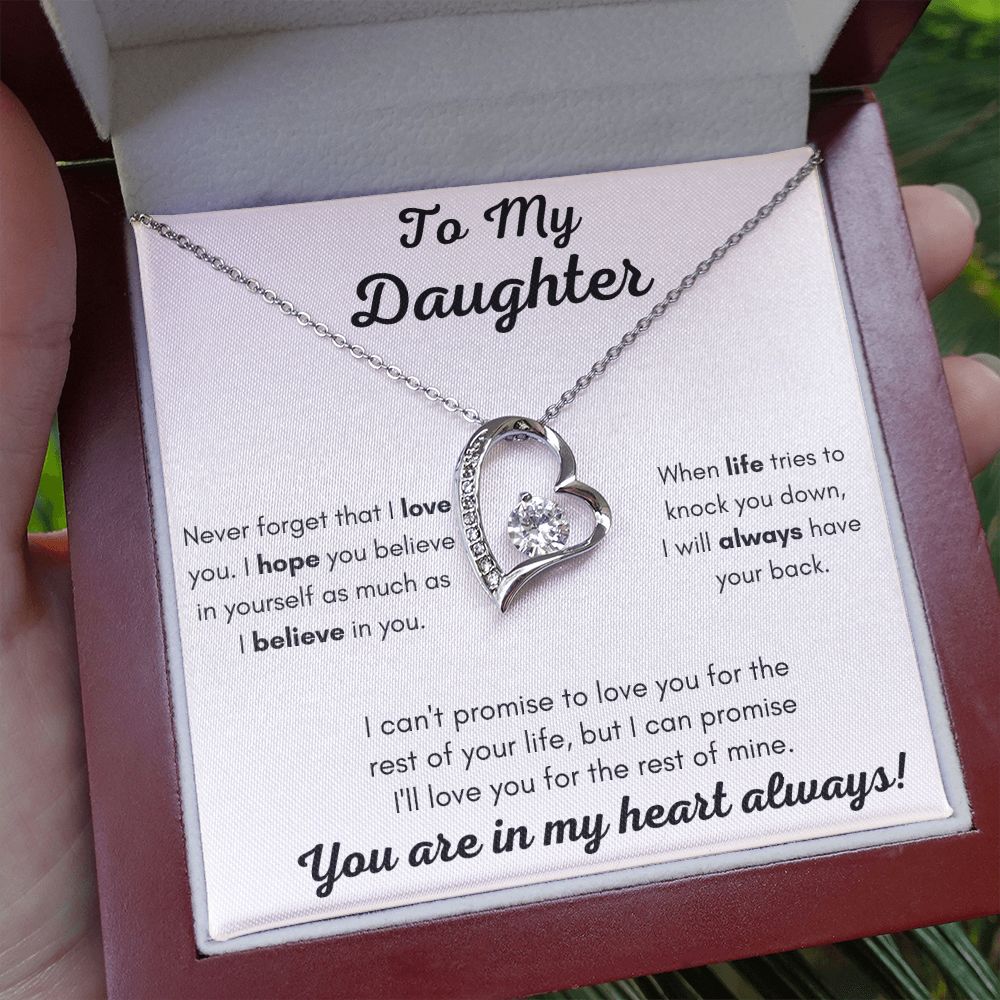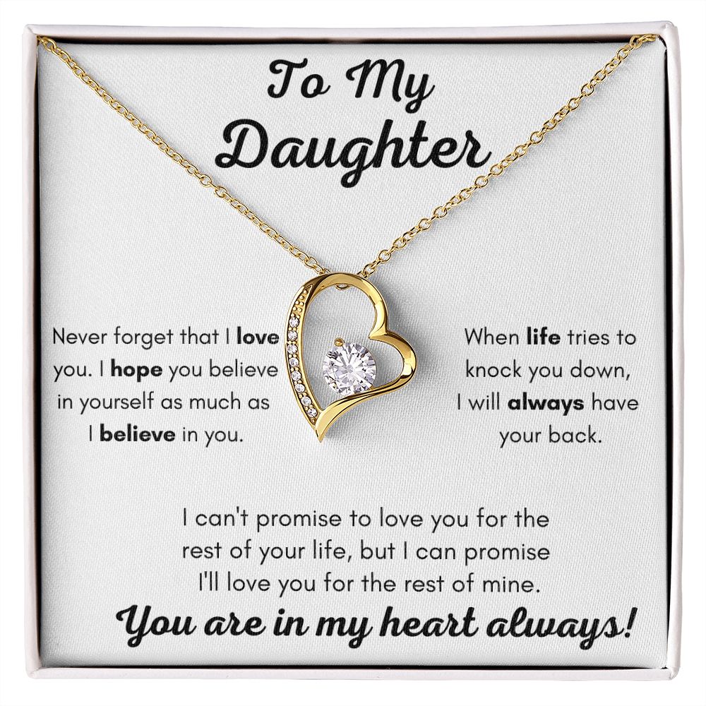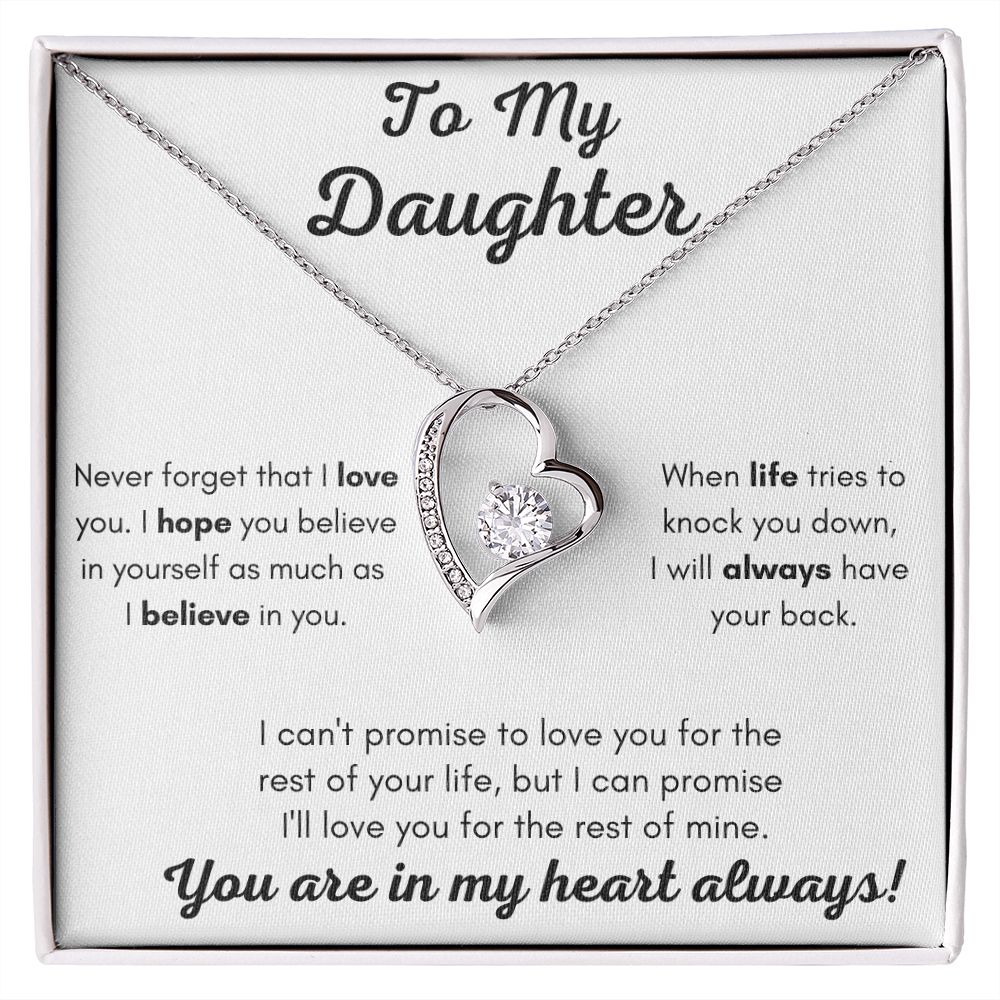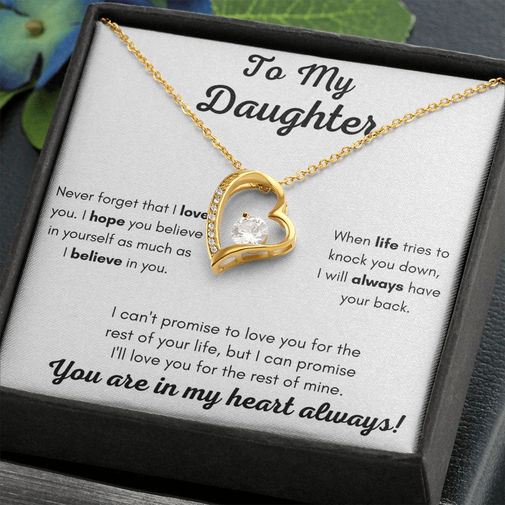 The dazzling Forever Love Necklace is sure to make her heart melt! This necklace features a stunning 6.5mm CZ crystal surrounded by a polished heart pendant embellished with smaller crystals to add extra sparkle and shine. Beautifully crafted with either a white gold or yellow gold finish, be sure to give her a classic gift she can enjoy everyday.